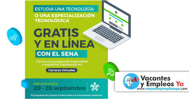Tipo de oferta estudiantil : Carreras virtuales en el SENA Formato: Virtual/Presencial Fecha de apertura: 20-09-2017 Fecha de cierre: 28-09-2017 Requerimientos: Sin definir